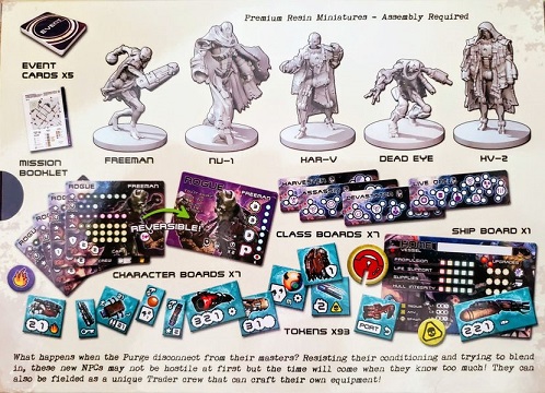 The second minis set is Rogue Purge. This is arguably more interesting than Shift Change, adding a new type of NPC that consists of, well, Purge gone rogue. They start off non-hostile and pursuing their own mysterious goals, but of course the powder keg can explode and their cybernetic bodies will eat bullets like the best of them.