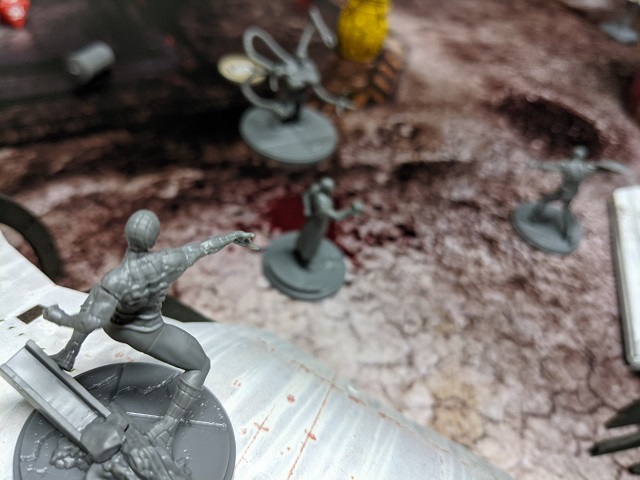 For instance, terrain can be thrown about the table and the rules actually incentivize this. In my first play Spider-Man slung a dumpster into Baron Zemo, knocking him out cold. In my last, Crossbones squared off with Black Widow and repeatedly slammed her into the side of a sedan. This is not flourish but actual process.
