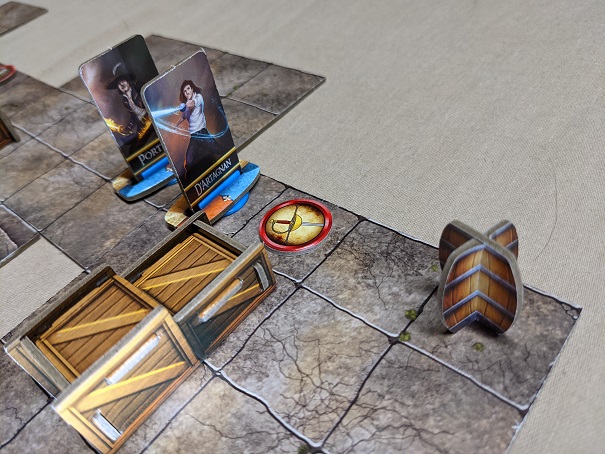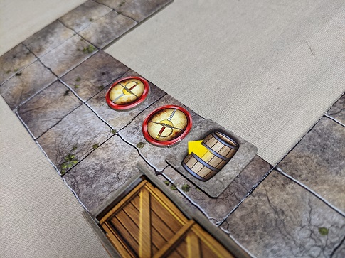 Some effort is given to inject a sense of expansiveness with the optional 3D terrain supplement, but it simply doesn’t work all too well. Some of the pieces are attractive in practice, such as the portcullis and wagon, but the bulk are a little too awkward and obtrusive visually. The barrels for instance aren’t round and no trickery will provide a visual illusion as such. Most of it also clashes heavily with the 2D enemy tokens which actually breaks immersion as opposed to supporting it. All of this measures up poorly to some of the really impressive objects we’ve seen in titles such as Descent: Legends of the Dark. It’s much better when a game realizes what it is as opposed to reaching for something it isn’t.