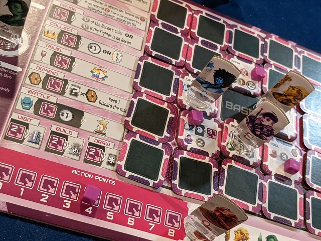 The attraction is in mechanical exploration. There’s a technical artistry here, one of designing balanced and unique systems that are effectively racing for points over a surprisingly brief 12 turn game. There’s a sense of joy in sitting down at the table and receiving a fresh new challenge, one no other player will be interacting with. While you’re exploring new tiles and juggling your adventuring party of standees, the punk sitting across from you is managing multi-use cards and action efficiency. Your rules of the game are entirely different than theirs – you’re special.