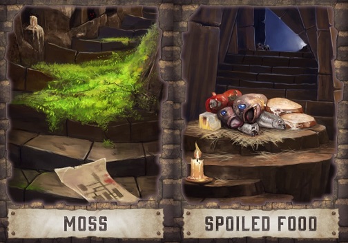 The concept here is great. Perhaps the best part of the game. Each player is a lowly kobold. You scurry about the dungeon room board and dig through junk, hoping to find some moss or a stalactite. Maybe some rotten food.
