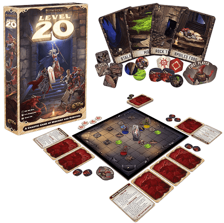 Pathfinder: Level 20 is the first design collaboration between Lynnvander Studios and Gale Force Nine. This small-box game is many things, but it definitely ain’t honest. Its first fib is the tall tale concept – anyone who has played the tabletop RPGs Pathfinder or Dungeons & Dragons knows that level 20 is a myth. It’s something you dream and read about, and that’s it.