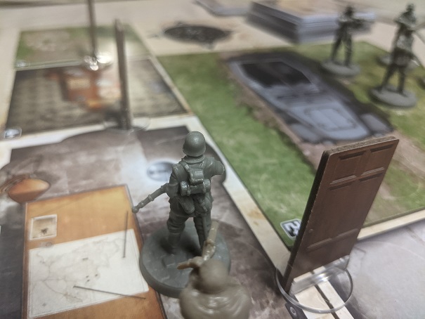 I’m still not 100% comfortable with the change, however. The big cost – besides labor and storage space – is that they don’t perfectly integrate with the game’s systems. Enemies spawn every round through tokens randomly drawn from a bag. These tokens are the units themselves. You pluck an STG-44 guard from the bag? Then you slam that little fascist down and keep the trigger warm. With miniatures, you now need to manage an entirely new sideboard. The initial impression is awful.