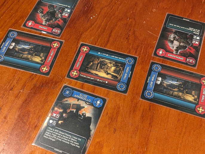 We’ve seen this show before. It draws upon influences such as Battleline and Magic: The Gathering to produce something that’s not terribly distinct or novel, despite all of the cards having a Gears of War facade. What saves this game from normality are two inspired components that inject vigor.