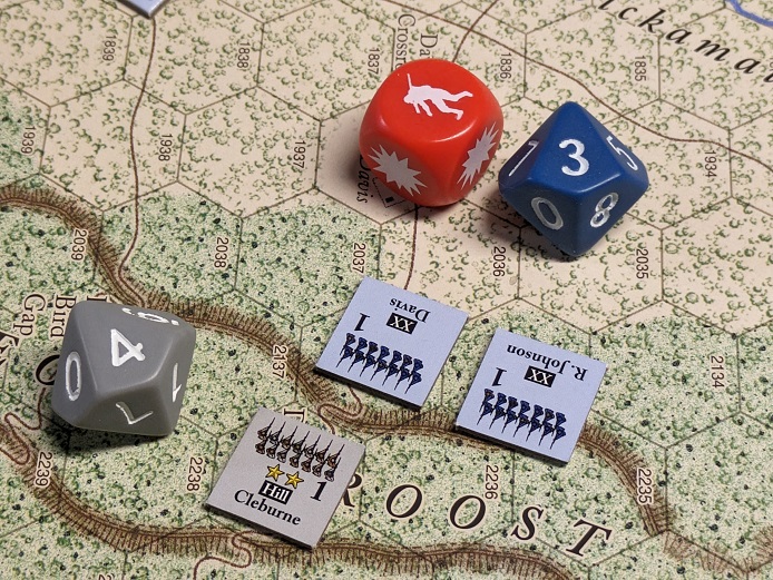 I’m with you, it sounds cumbersome. It’s effectively a two-step CRT that obfuscates much of the math. With repeated play, some of the nuisance of this system fades and I found myself appreciating it. The outcomes are often interesting, with effects such as blown units, retreats, and counter attacks. It can produce vibrant narratives and flows from the maneuvering relatively well. The systems interlock in a cohesive way, and it rarely feels stilted.