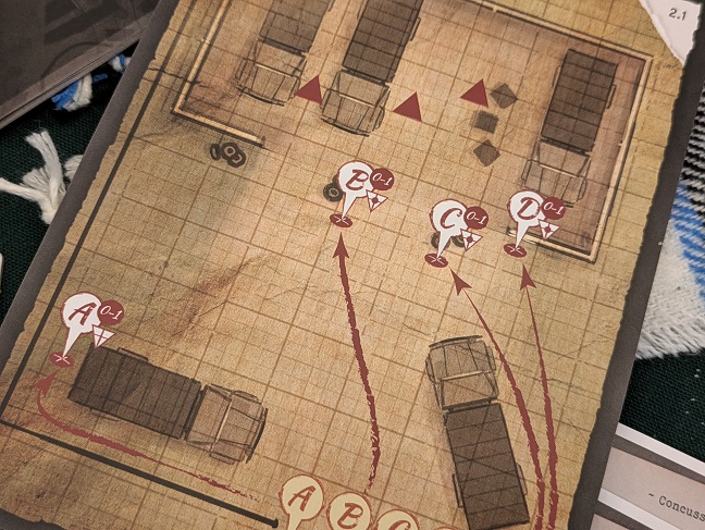 The overall structure of the missions and the narrative plotting is the design’s strong suit. Particularly during the key moments when map sheets are brought forth from secret envelopes and players are tasked with whipping together strategic approaches to a variety of firefights. Sometimes you will need to determine which agents will provide covering fire while others charge across a field and storm an enemy building. Other times you will have to split forces to cover multiple ambush routes, using narrative context and gut instinct to form squads. Equipment is rationed and the various skillsets of your squad all contribute to the nuanced tactical decision-making.