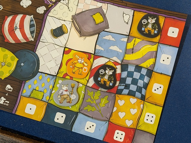 One of the dice actions allows you to recover these cats. The pip showing on the die activated correlates to a row or column of your nap-area. This requires careful thought when spending your resources as you must decide how to strategically organize them in your grid. It’s not laborious, but it’s a stodgy activity that doesn’t feel particularly rewarding or clever.