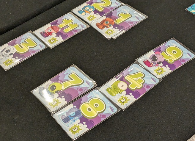 Pretty simple. If your 4 has a 12 sitting next to it, you can pick the 4 up and cover the 12. Now you have a stack. The next time 4 is called, you can move that stack and cover up the 2 that’s now adjacent. This keeps going with numbers being called and players performing atomized actions of moving cards around.