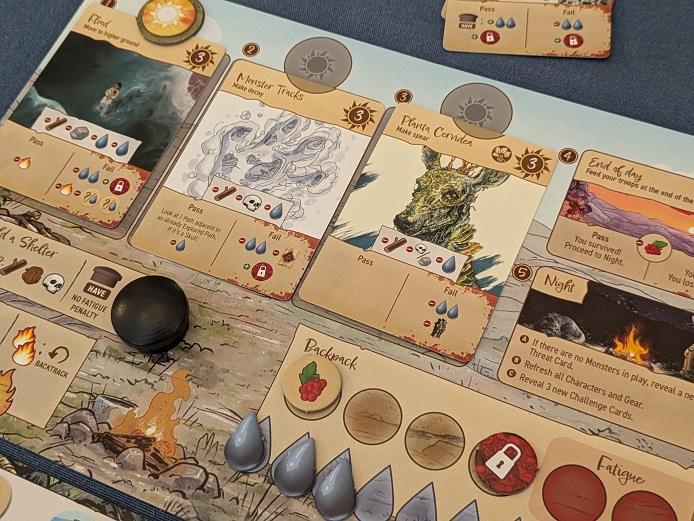 You can tell a great deal of effort was put into capturing the setting and evoking tendrils of story. The scenarios show strong potential for variety, Challenge cards are framed as narrative events, and the exploration does feel as though you are charting out an area of untamed land. But too often the narrative is pushed aside and fades almost immediately to the background.