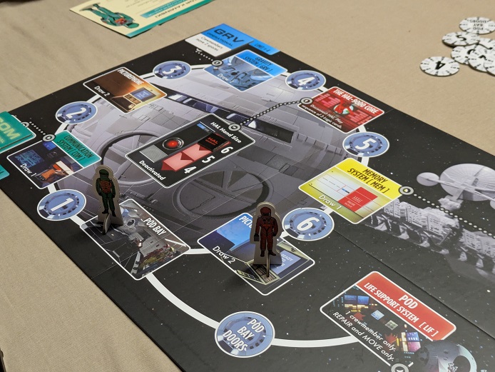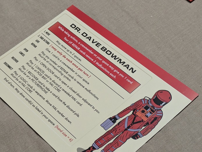 HAL’s deck is stuffed with malfunctions for various stations on the spacecraft. As an action, HAL can place one of these cards on the associated location and cause it to degrade. Break enough modules, or just the life support system, and the ‘nauts lose.