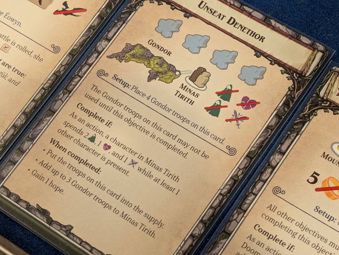 Take care, for this is not a straightforward or accessible design. Fate of the Fellowship is firmly mid-weight, its genes belying the foundational complexity. With four or five players at the table, this will go a good two and a half or three hours. This is a much more substantial game than many would expect. The primary driver of this mass is the objective system.