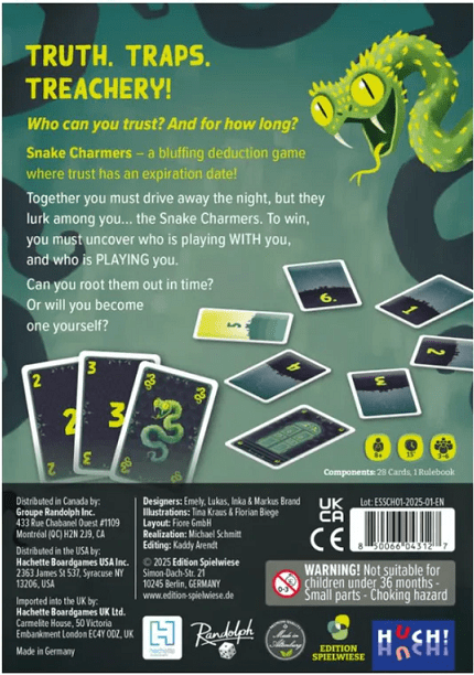 A crafty salesperson would push Snake Charmers as a cross between Cockroach Poker and The Resistance. This allusion is a strong sell, as it ties this new release to two of the best bluffing and deduction games ever designed. Fortunately, it is a reasonably accurate comparison, even if Snake Charmers can’t quite deliver the impact of its influences.