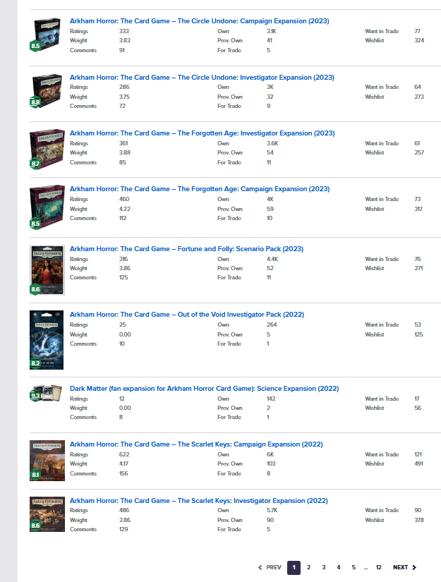 Literally hundreds of products. Navigating this quagmire seems an impossible task. Furthermore, with many of the expansions being out of print, the core promise is broken. The whole egalitarian structure of no blind buys crumbles if you’re still chasing difficult to find cards in the secondary market. Good luck, Kenny. Dude just wants to go to the store and exchange currency for cardboard. He doesn’t want to have to spend hours researching scenarios and campaigns and investigators. He doesn’t want to dig through dozens of online stores and reselling sites trying to find that one crucial set everyone raves about. This one game becomes its own domain of study.