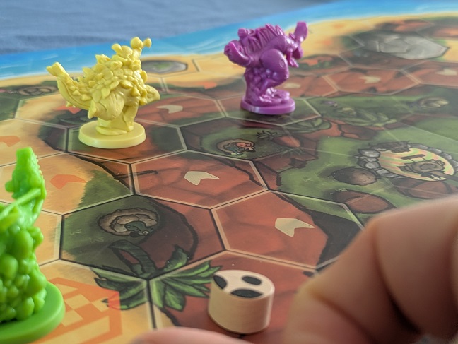 I would describe Dodos Riding Dinos as lively and attractive. It’s an overtly inviting game that strongly appeals to children, both of age and heart. And it does understand the concept of the kart racer pretty well, homing in on the violence and energy of the genre. But it’s absolutely run over by its peers. Flying off ramps and exploding on canyon walls is adrenaline fueled mayhem. Attaching your Suckerfish to Baba Yaga and then tripping over a giant banana is outlandish. Dropping a meteor token and then trying to decipher the messy board state to determine which pieces were actually hit is, well, totally fine.